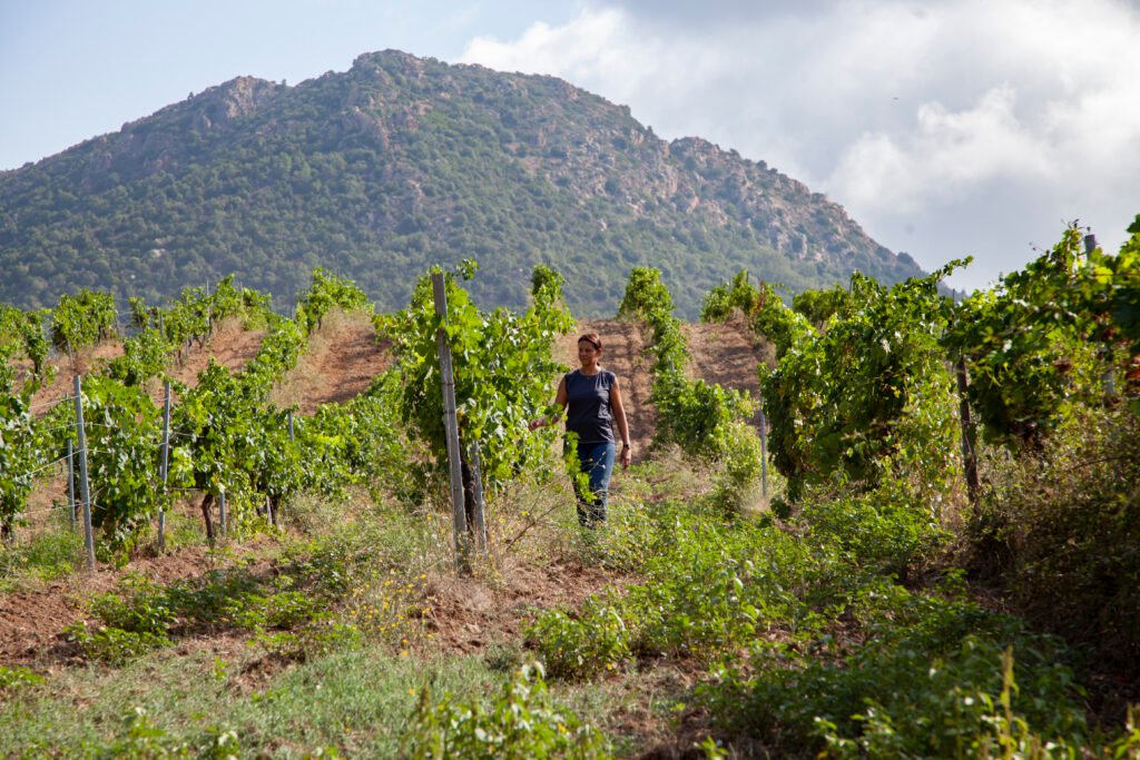En longeant la côte, le Domaine de Granajolo s’impose comme une halte incontournable. Certifié bio depuis les années 1980, ce pionnier de la viticulture durable s’étend sur des coteaux baignés de lumière, face à la Méditerranée. Aux côtés de sa mère Monika, Gwenaële élabore des rouges et des rosés (Niellucciu, Sciaccarellu,…) qui allient structure et finesse, tandis que les Vermentinu déploient une aromatique florale et minérale. Une dégustation au domaine se prolonge aisément par un dîner en terrasse à Porto-Vecchio, entre mer turquoise et parfums de maquis.