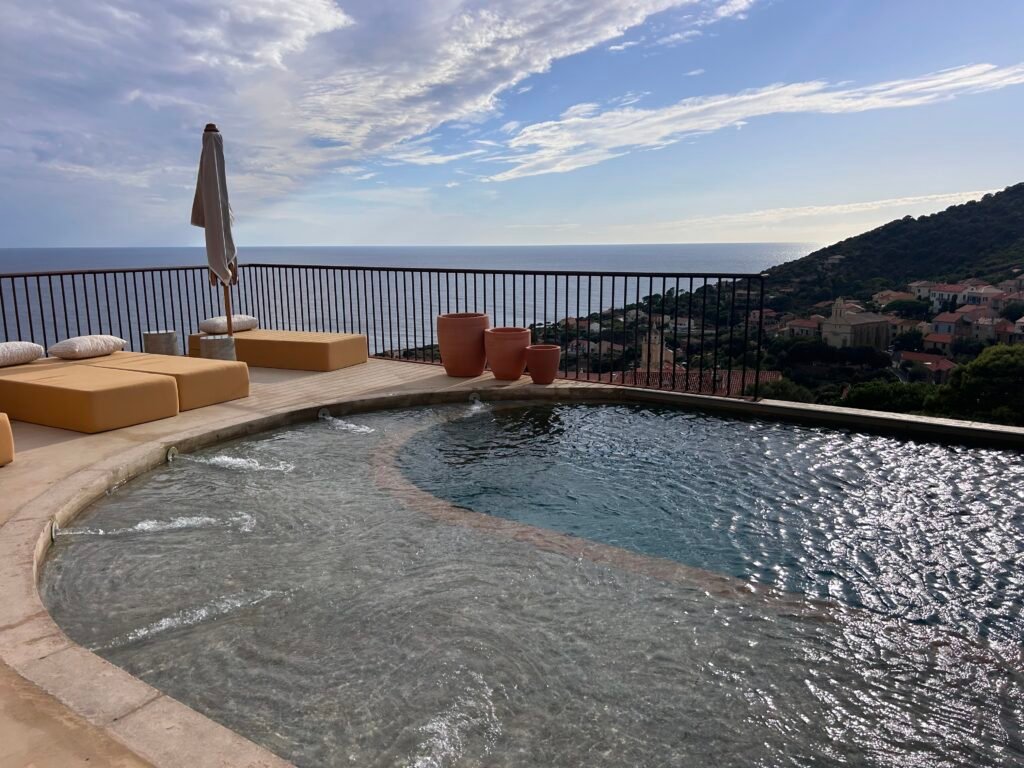 Dernière halte à Cargèse, perle suspendue entre mer et montagne. Le Mylos Hôtel, signé par Orma Architettura et Dorothée Meilichzon, incarne le chic méditerranéen : lignes épurées, matières naturelles, piscine à débordement et vue sur la mer. Véritable coup de coeur, ce cocon de design méditerranéen joue sur les matières naturelles, la lumière et la douceur. Les chambres s’ouvrent sur la mer ou le village, la piscine à débordement semble flotter au-dessus du bleu et le petit-déjeuner sur la terrasse invite à savourer le temps. L’adresse parfaite pour conclure ce voyage entre authenticité et élégance.